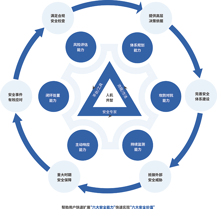 通過能力的擴展,幫助組織實現(xiàn)“六大安全價值”通過海龍科技安全專家和用戶安全團隊的協(xié)同合作,快速擴展組織的安全能力,從容應(yīng)對各種安全挑戰(zhàn),實現(xiàn)滿足合規(guī)安全檢查、提供高層決策依據(jù)、完善安全體系建設(shè)、抵御外部安全威脅、重大時期安全保障以及安全事件有效應(yīng)對等六大安全價值!